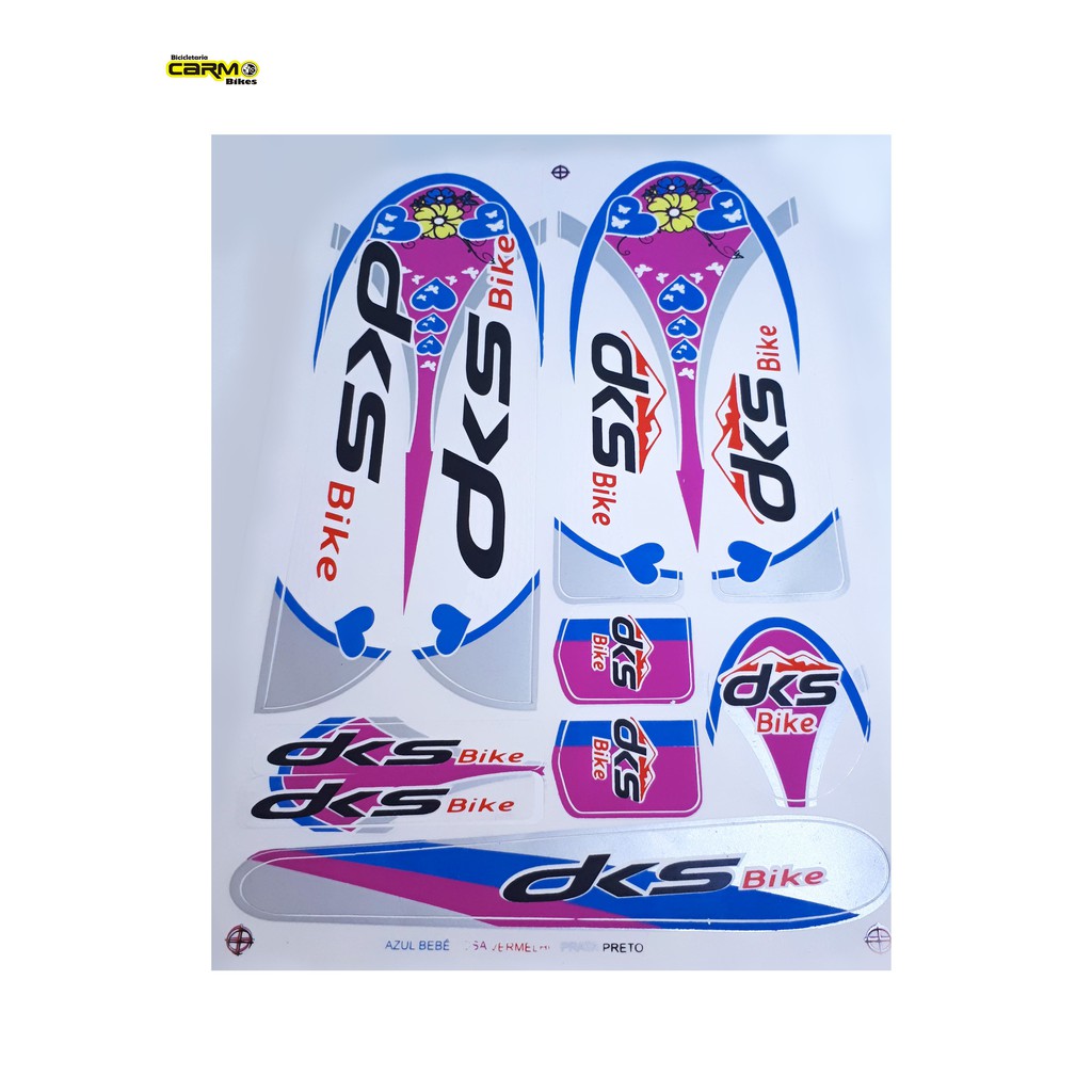 Adesivo Quadro Bicicleta Dks Bike Rosa Cartela Completa