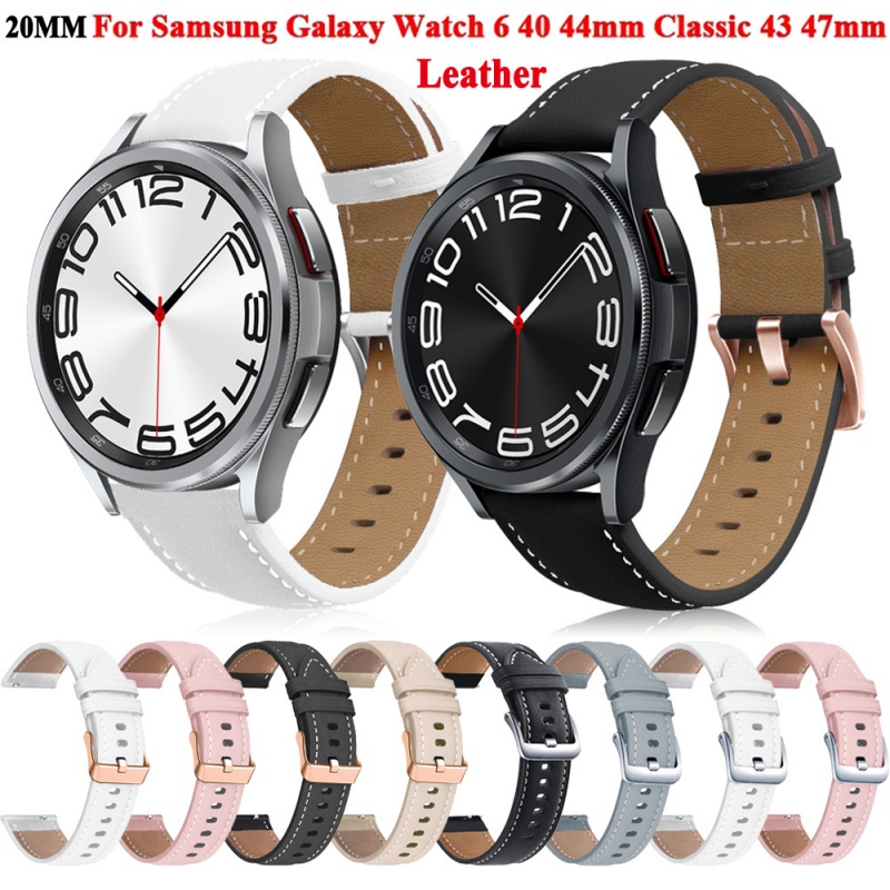Pulseira De Couro De 20mm Para Samsung Galaxy Watch 6 Clássico 43mm 47mm Pulseira De Relógio Para Galaxy Watch 6 5 4 44mm 40mm Acessórios