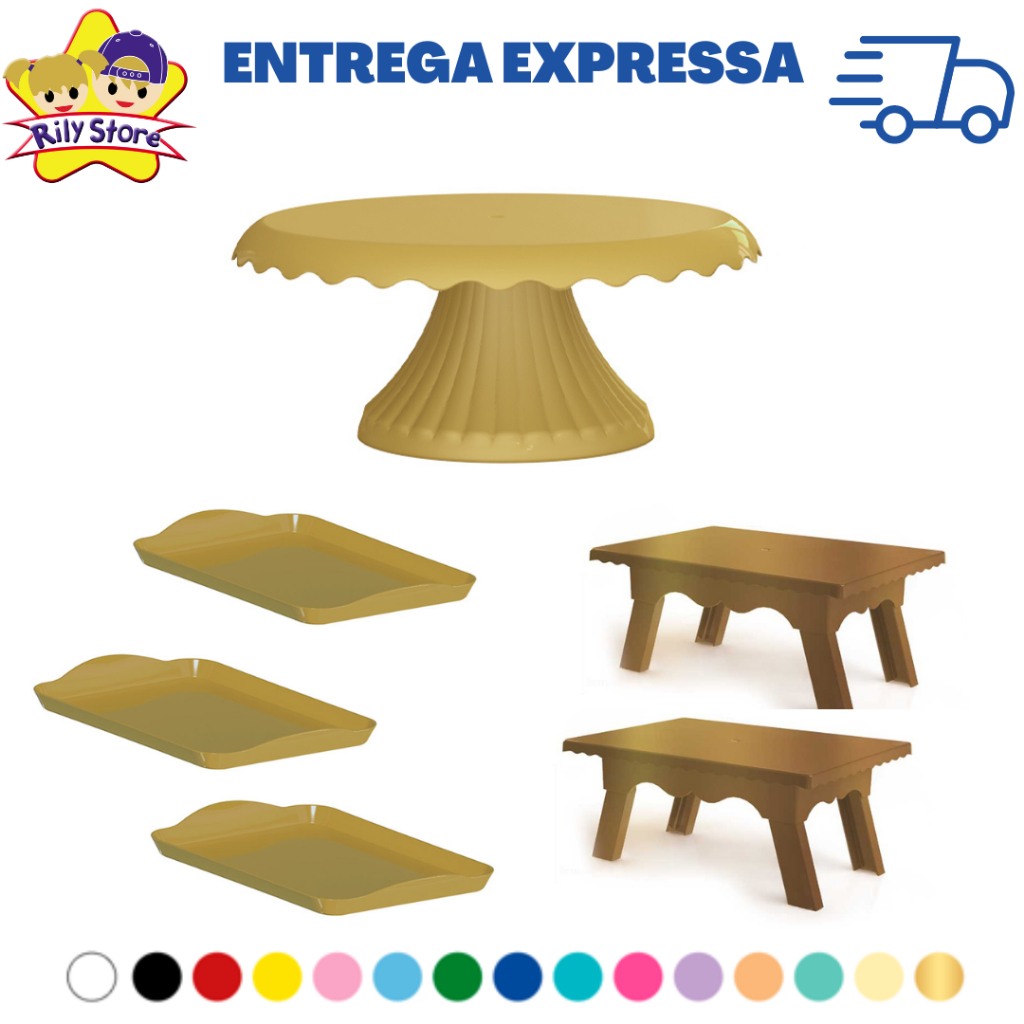 Kit Boleira Cake Renda 19cm - 2 Mesinhas e 3 Bandejinhas decorativas Diversas Cores