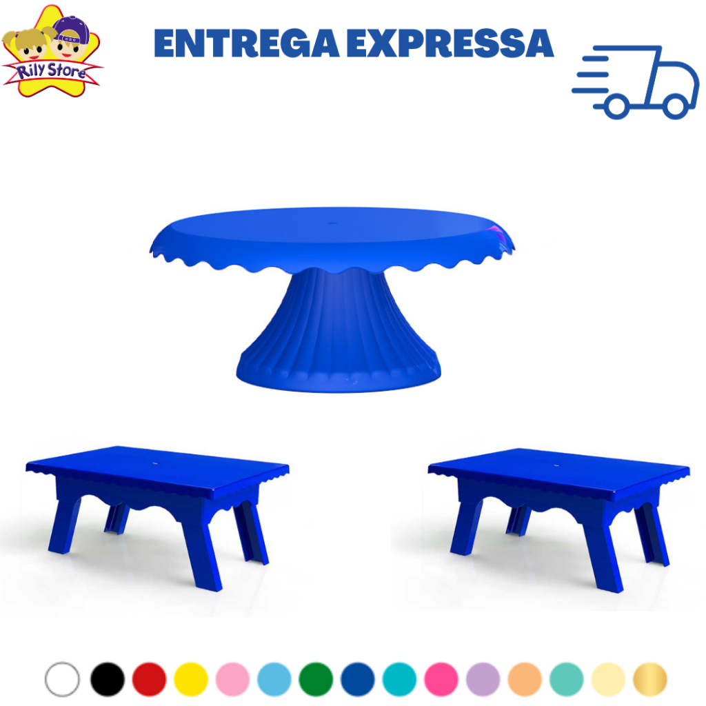 Kit Festa 1 Boleira Cake Renda 19cm + 2 Mesinhas Decorativas - 3 peças (+ 20 cores )