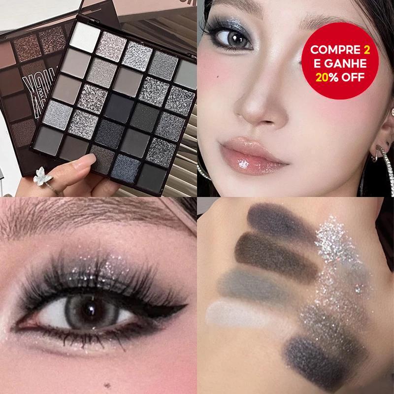 Paleta de Sombra para Olhos 25 Cores Olho Esfumado Cinza Gótico Escuro Maquiagem para Festas