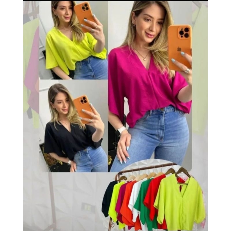 Blusa Bata Feminina Duna Manga Morcego Decote V 丨 Tecido Duna