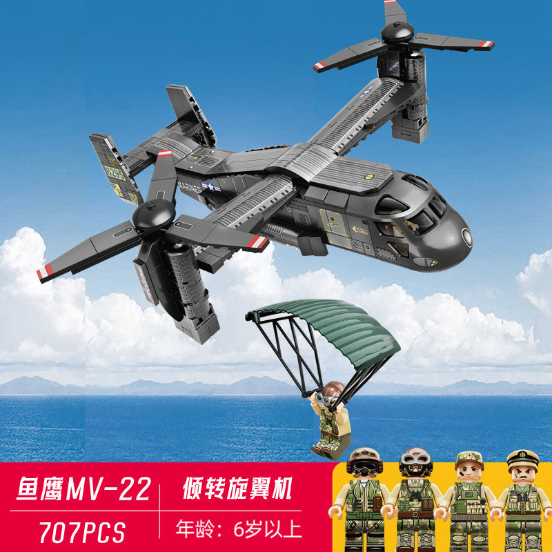 Bloco De Construção Lego Série Militar Compatível Modelo MV-22 Osprey Helicópteros De Batalha Dobráveis Conjunto De Brinquedos De Vôo Para Crianças E Adultos