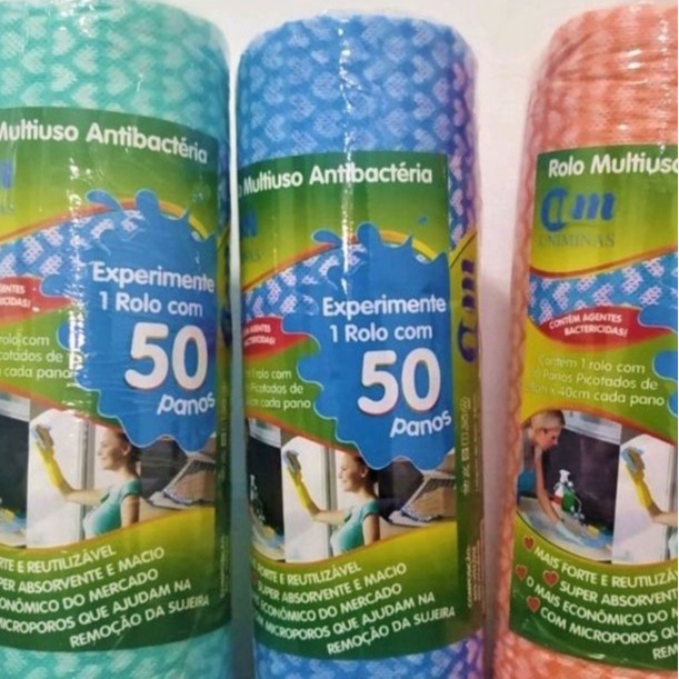 100 Panos Multiuso p/ cozinha 2 Rolo com 50 Panos Antibactérianos