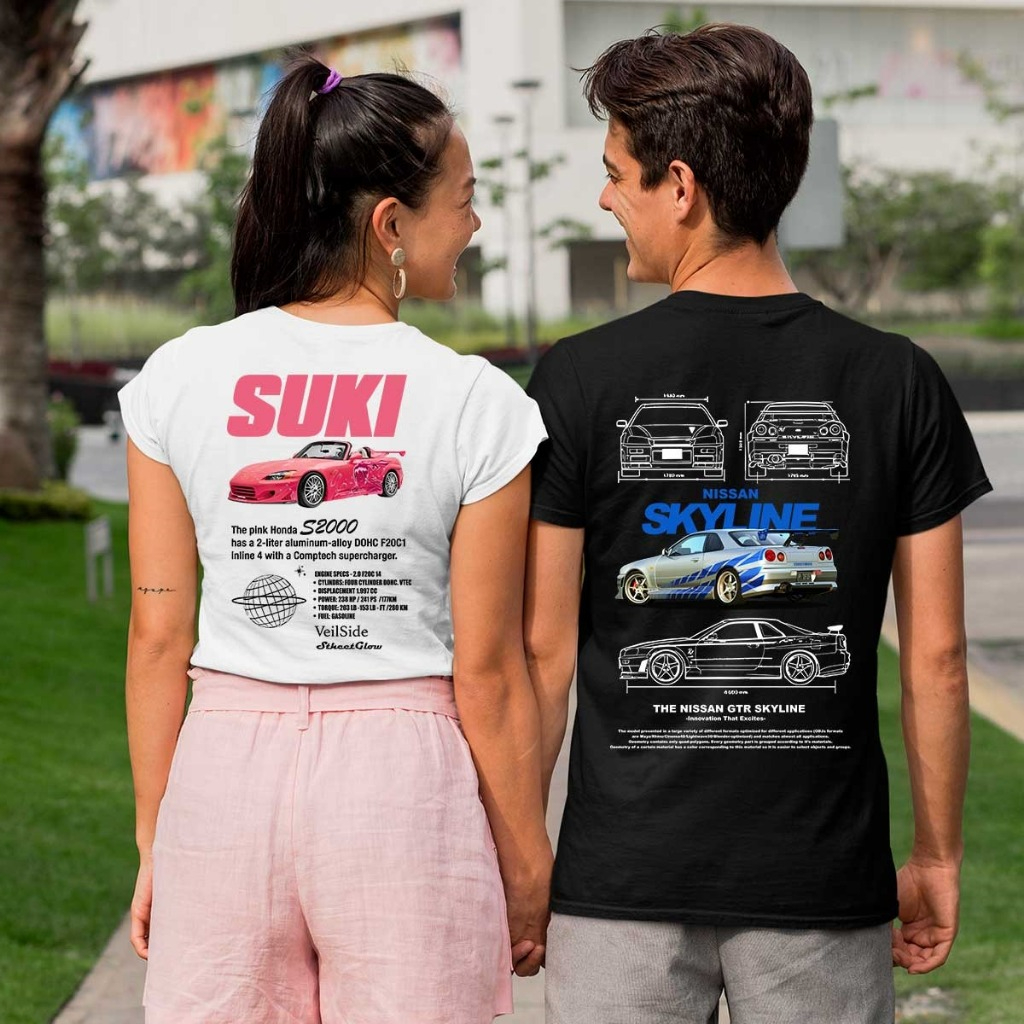 Kit de Camiseta Casal Velozes e Furiosos Skyline Pink Honda Bullet Suki Gearhead