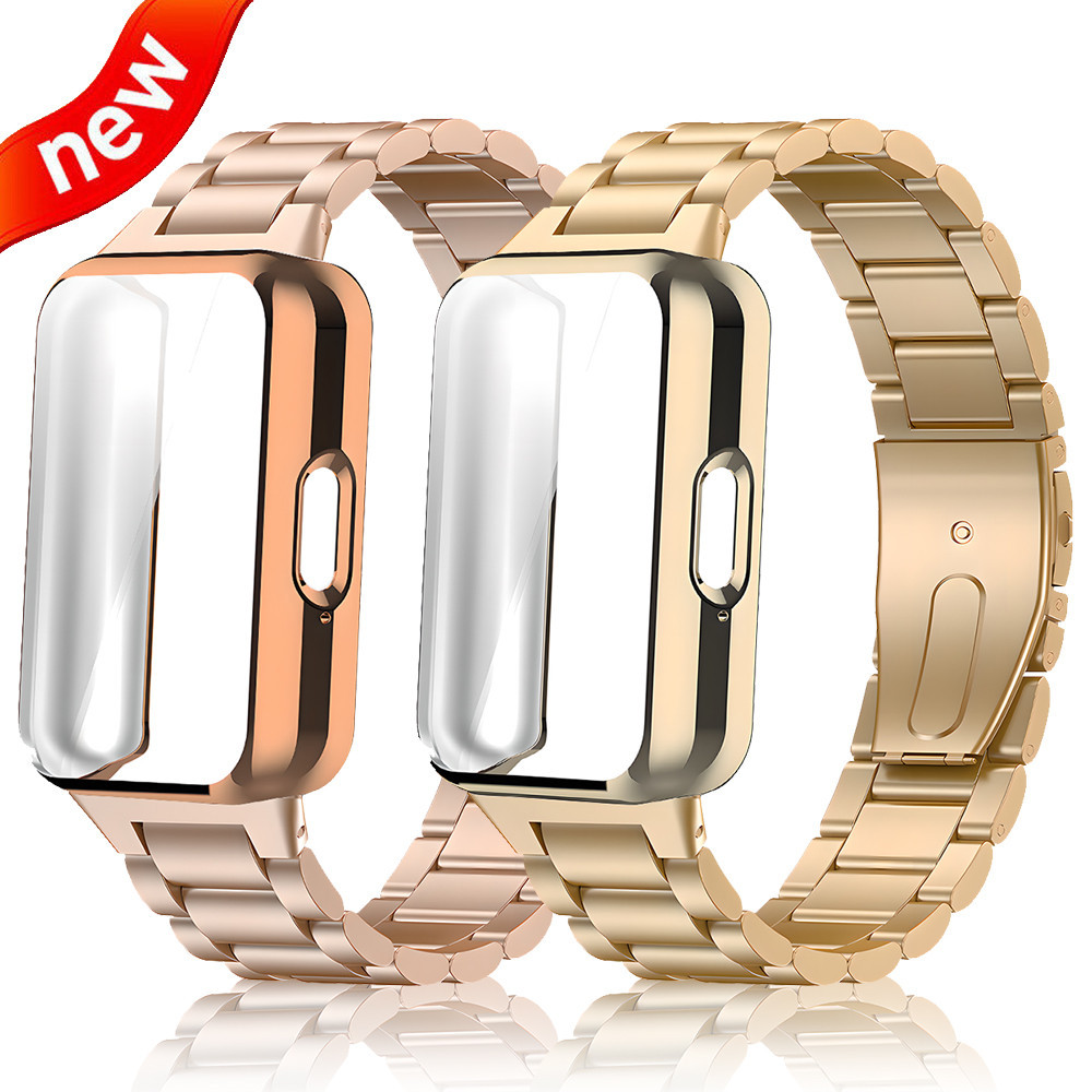 Case + Band Para Samsung Galaxy Fit 3 Pulseira De Aço Inoxidável Tela Protetora De TPU Macia Acessórios De Cinta Metálica Fit3 Correa
