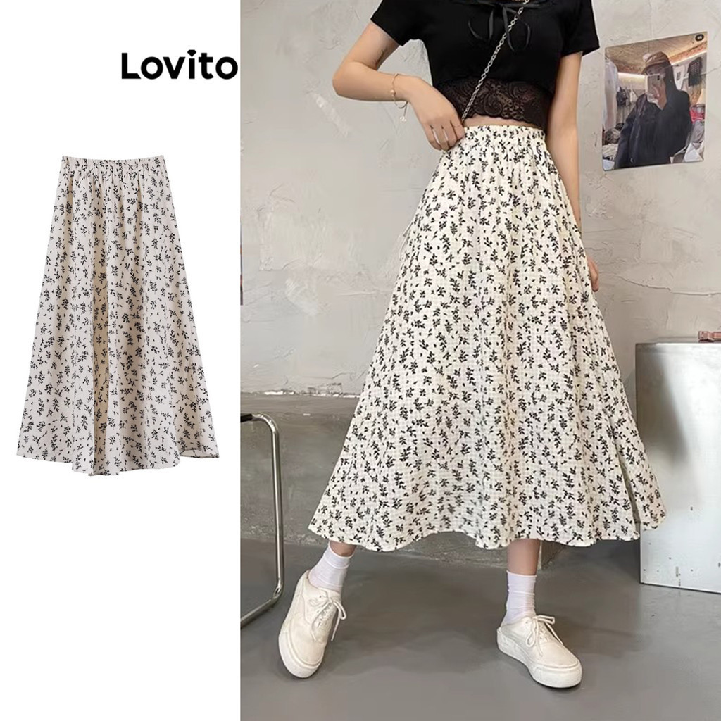 Lovito Saia feminina casual Ditsy com flores florais LNE51178