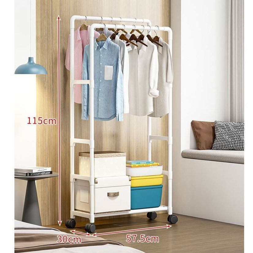 Cabideiro Arara de Roupas Duplo Multiuso com Sapateira Aço Prateleiras com Rodinha