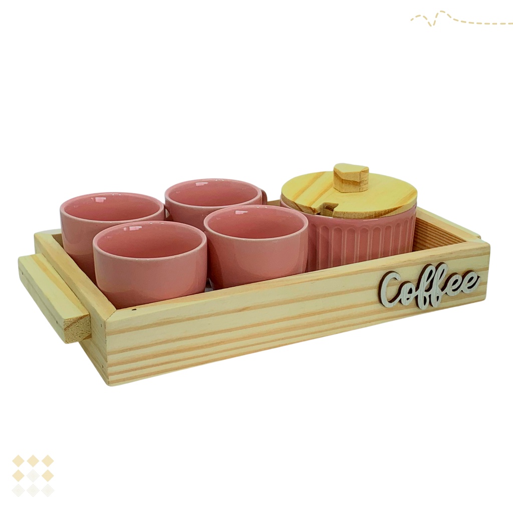 Jogo Xicara Café com Bandeja E Açucareiro Rosa Porcelana Cantinho do Café - Mundo da Porcelana
