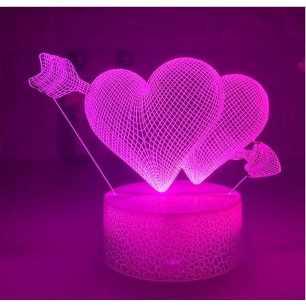Luminária de Mesa Decorativa Coração Duplo Flechado Muda de Cor no Controle Remoto