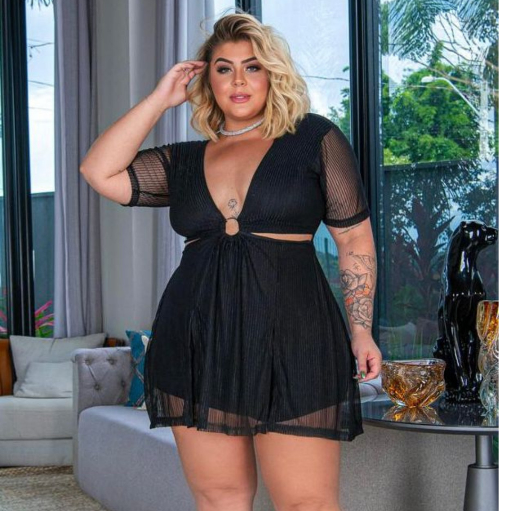 Macaquinho Manga Curta Festa Balada Plus Size Maravylhosa Curve