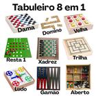 Jogo de Tabuleiro 8 em 1 Inclui Dama, Dominó, Ludo, Trilha, Jogo da Velha, Xadrez, Resta Um e Gamão