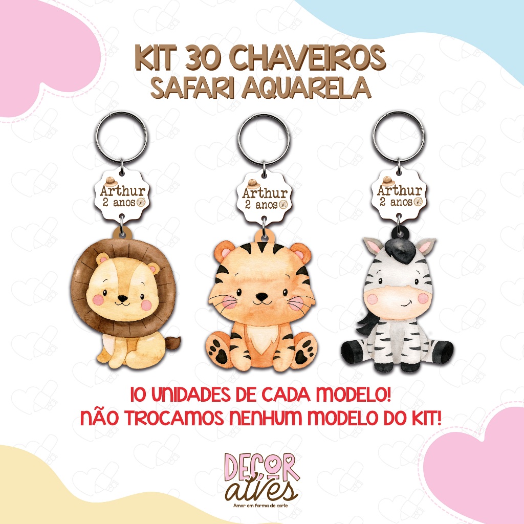 Safari Aquarela KITS VARIADOS - Chaveiro Personalizado MDF brilhoso Lembrancinha infantil