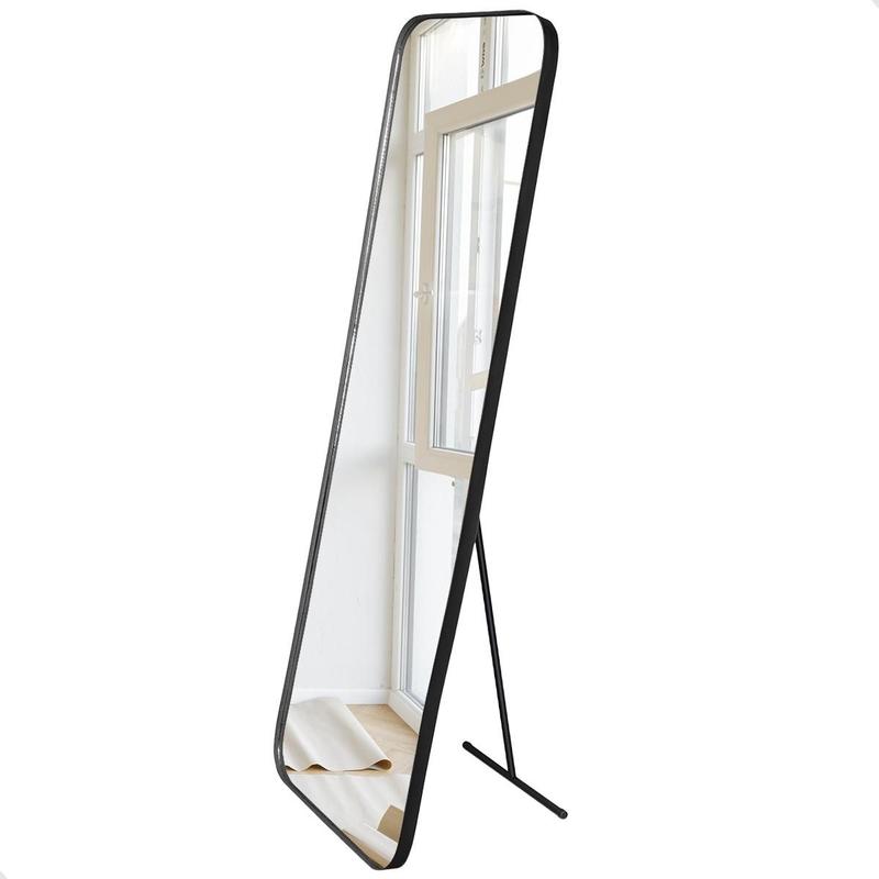 Espelho Retangular 150x50cm Suporte de Chão Corpo Inteiro Couro Orgânico