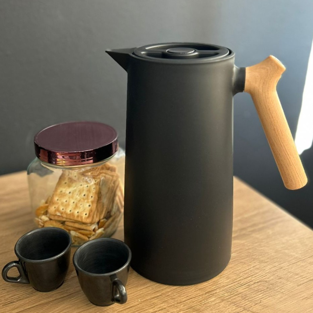 Garrafa Térmica Café Chá 1 Litro com Cabo de Madeira Nórdica