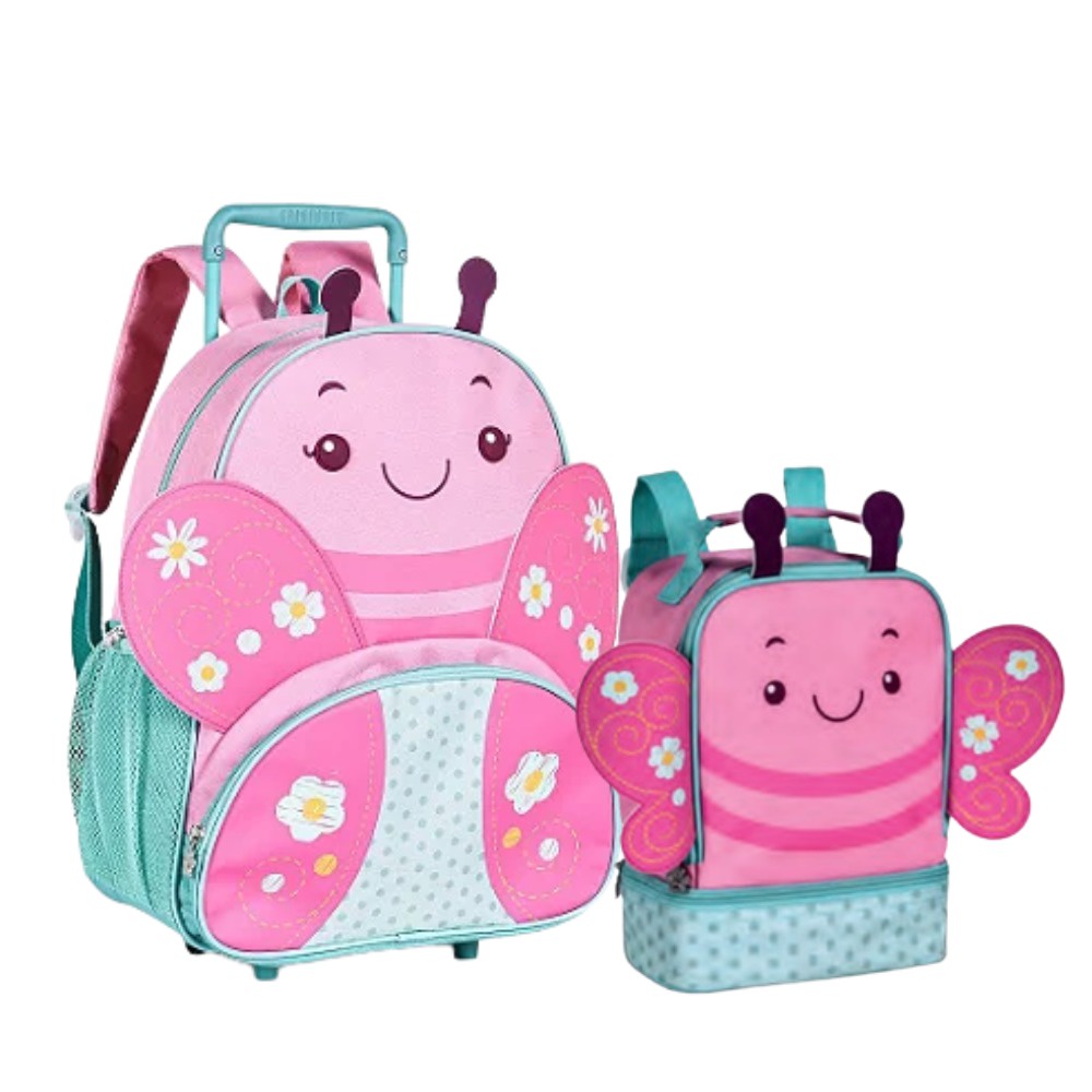 Kit 3 peças Mochila Escolar Infantil Feminina Carrinho com Rodinhas e Lancheira Térmica Unicórnio Khloe DL0977