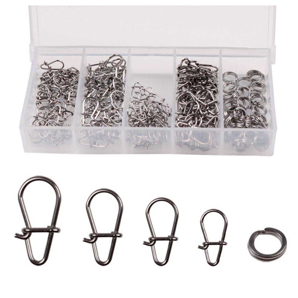 200pcs Anéis De Pesca Duo-Lock Snap Pin Assortment Kit De Sortimento De Pinos De Aço Inoxidável Duplo Anel Plano Ring Lure Tackle Connector