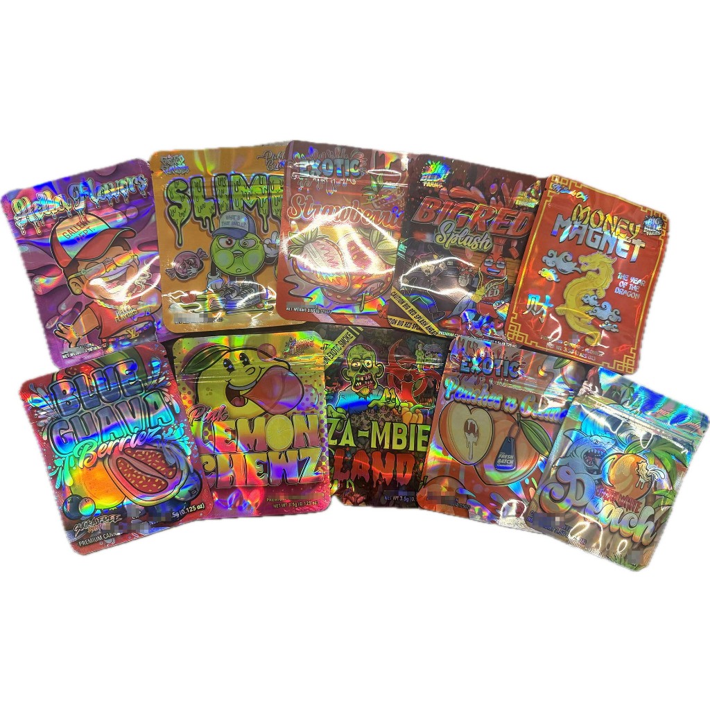 100Pcs ERR Mylar Imprimir Saco De Biscoitos chocolate Doce CBD ziplock 10 design mix