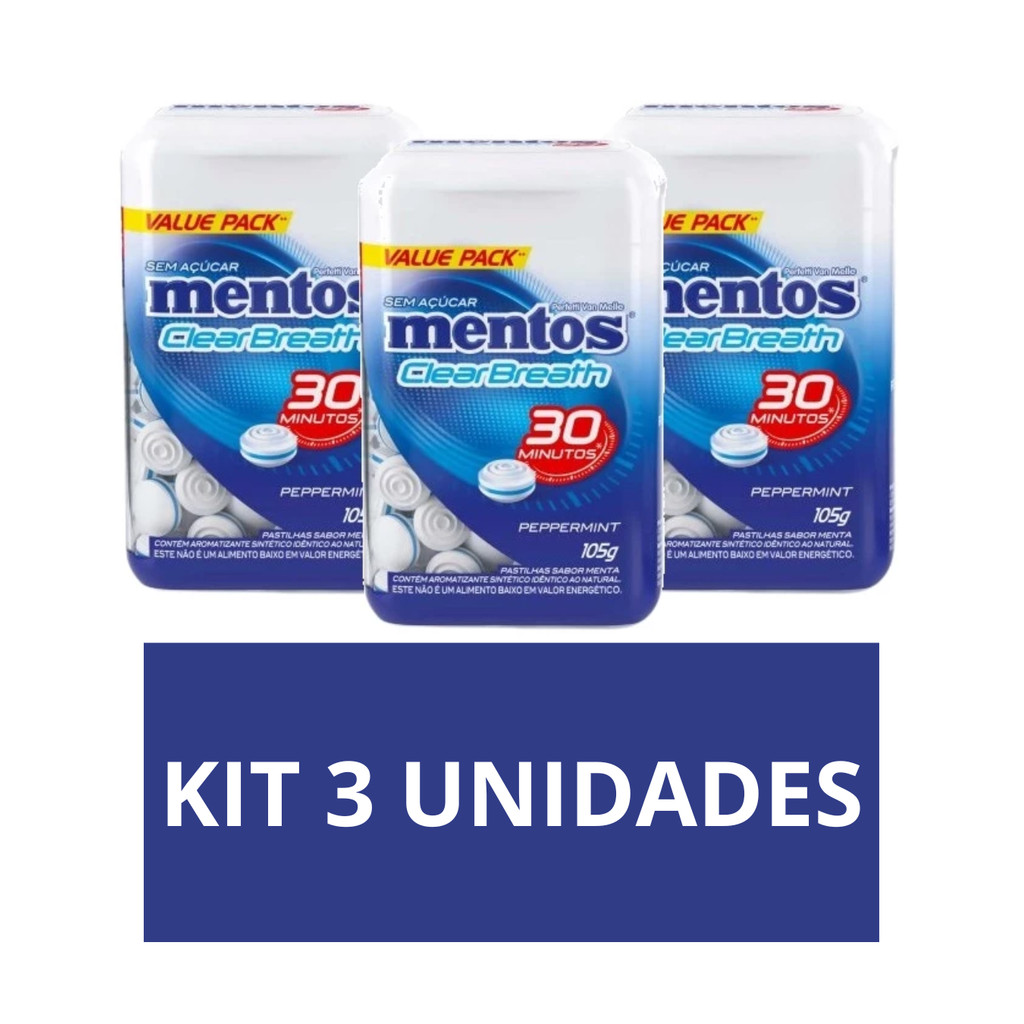 Kit 3 unidades Mentos Pastilha Sem Açúcar Peppermint Clear Breath - Hálito Fresco e Prolongado - 150 Pastilhas