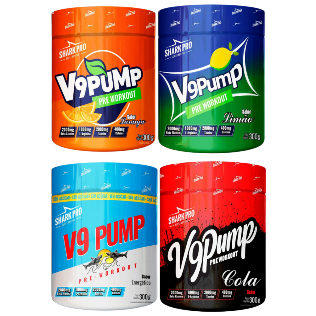 V9 Pump Shark Pro 300g e 150g Pré Treino Com Beta Alanina Sabores