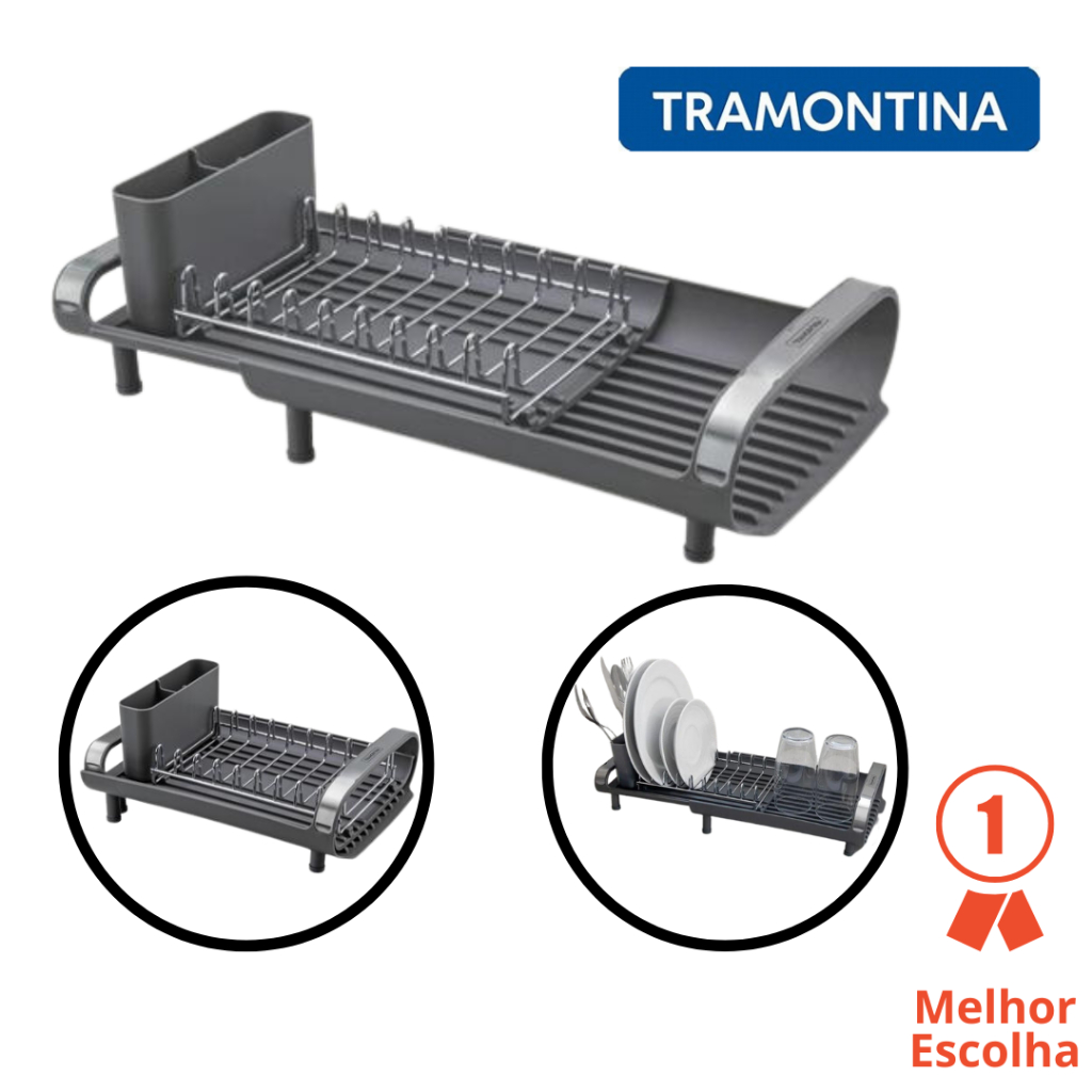 Escorredor De Louça Plurale Compacto Com Secador E Porta Talheres Grafite - Tramontina 61537000