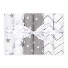 Bloomsbury Mill - Pacote de 6 cobertores de recebimento de musselina super macia - Algodão orgânico 100% certificado em estrelas de fita presente, Chevrons & Polka Dots Designs - Cinza e Branco - 28" x 28"