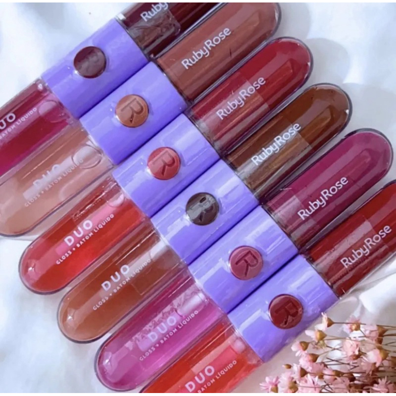 Batom Liquido E Gloss Duo - Ruby Rose Pigmentação e Brilho espelhado em um produto só! Oferece versatilidade em um único produto.