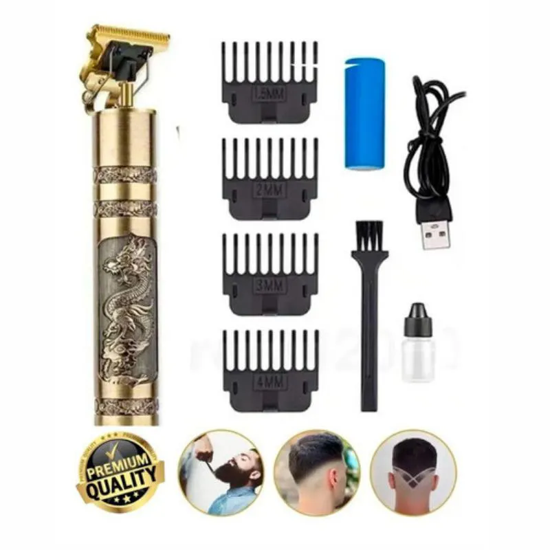 Máquina De Acabamento Cabelo Barba Detalhe Dragão Dourado Recarregável Profissional Sem Fio