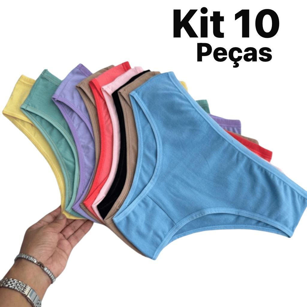 Kit 10 Calcinhas 100% Algodao Basica dia a dia Conforto Calcinhas Lisas