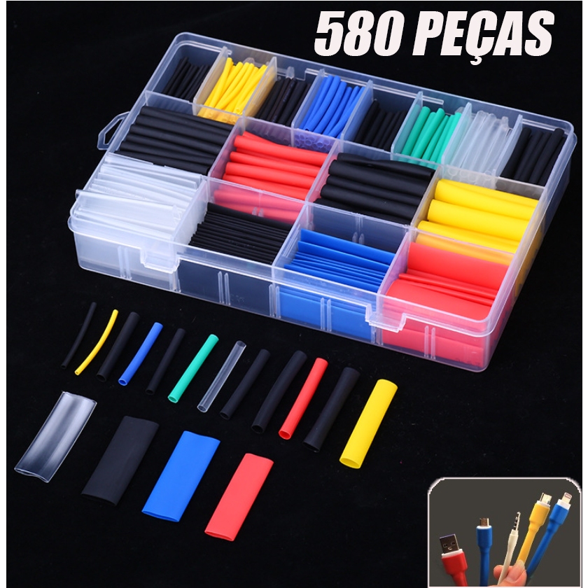 Kit De Tubo Termo Retrátil Espaguete Colorido Em Polietileno Com 580 Peças
