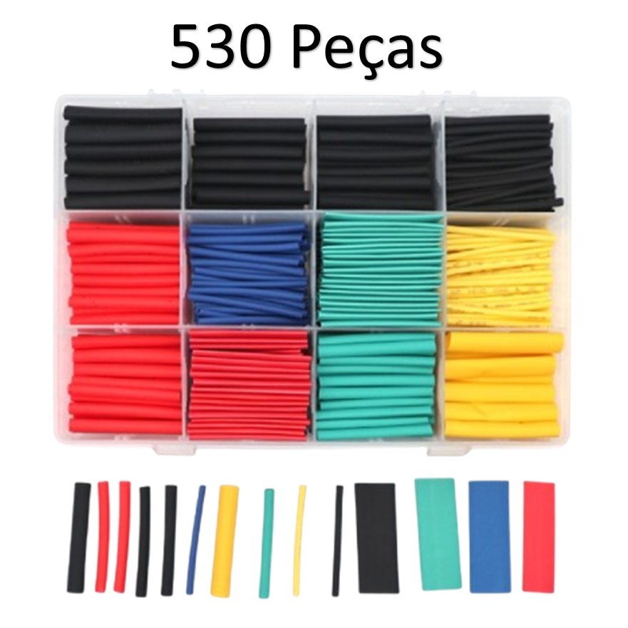 Kit De Tubo Termo Retrátil Espaguete Colorido Em Polietileno Com 530 Peças