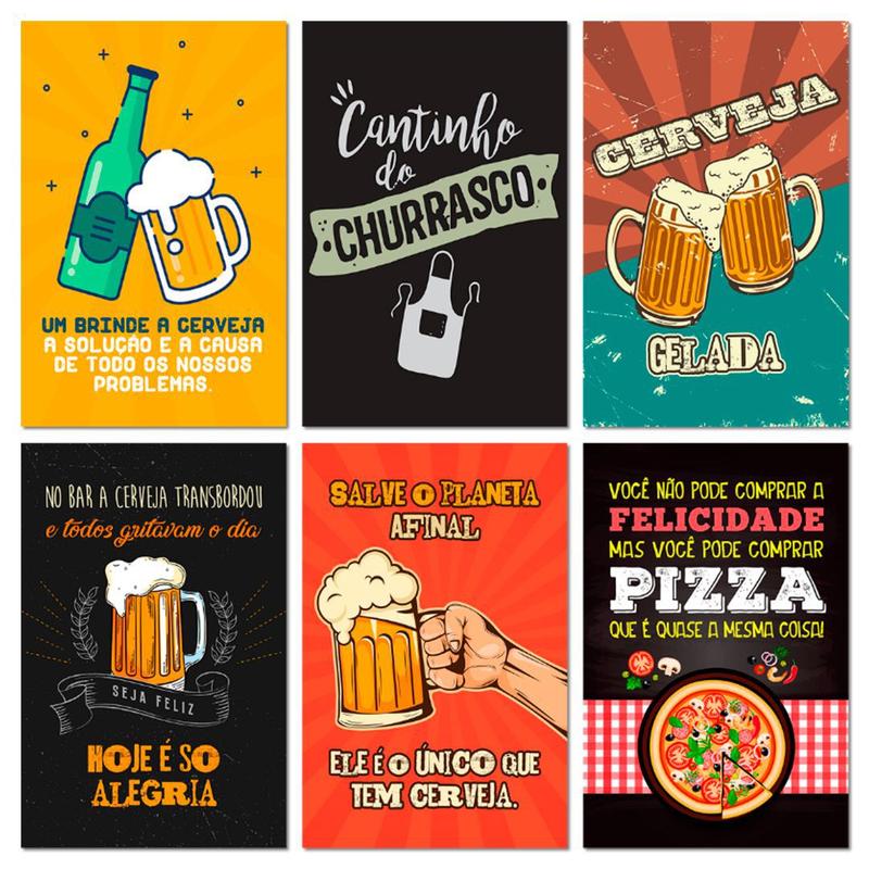 Kit 6 Placas Decorativas Cervejas Churrasco 20x30 cm Mdf