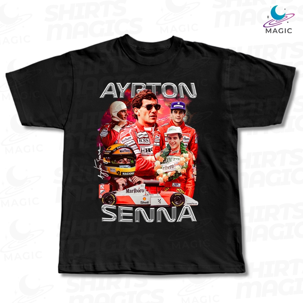 Camisa Básica Magic Car F1 - FORMULA 1 MP4/4 1988 logo centro assinatura 100% algodão unissex