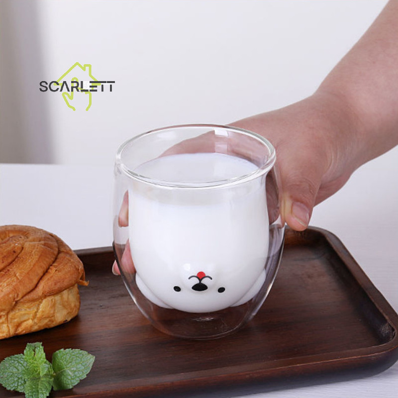 [Scarlett] Caneca De Vidro Animal Fofa De 250ml De Água De Camada Dupla Criativa Café Kid Beer Milk Juice Cup Gift Drinkware Cozinha [Preferred]