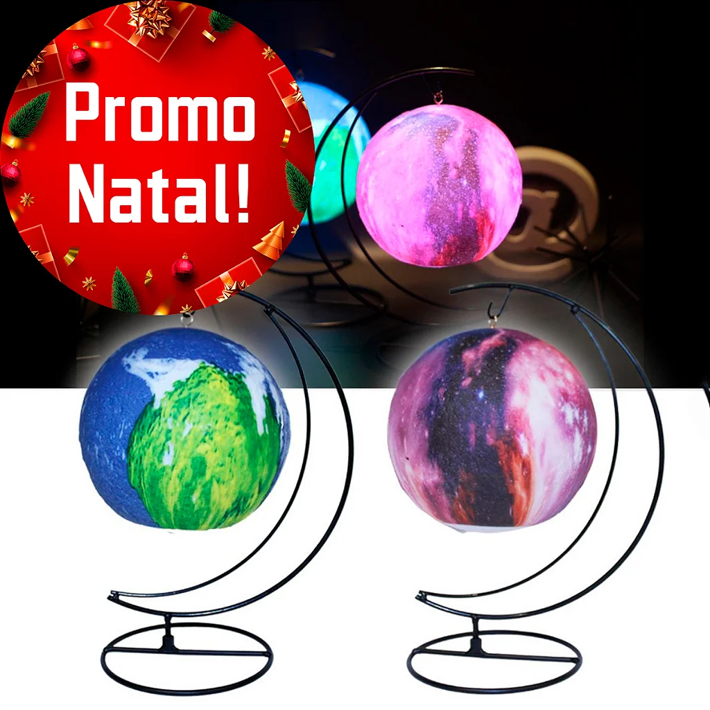 Luminária Pendente Planeta Galáxia 3d Abajur Usb Com Controle RGB Colorido