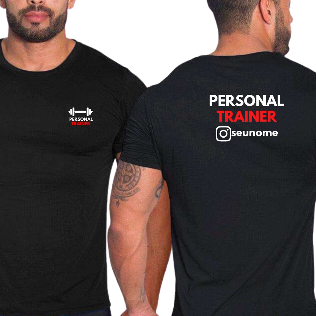 Camiseta Personal Trainer poliamida poliéster furadinha academia esporte professor instrutor dry fit