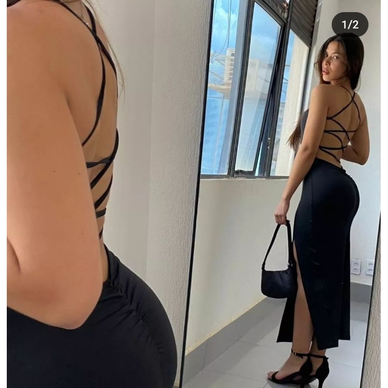 Vestido Longo Com Fenda Costa Nua Trançado e Elevação de Bumbum ( GISELLE )