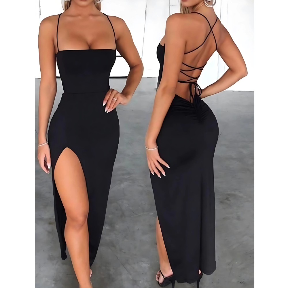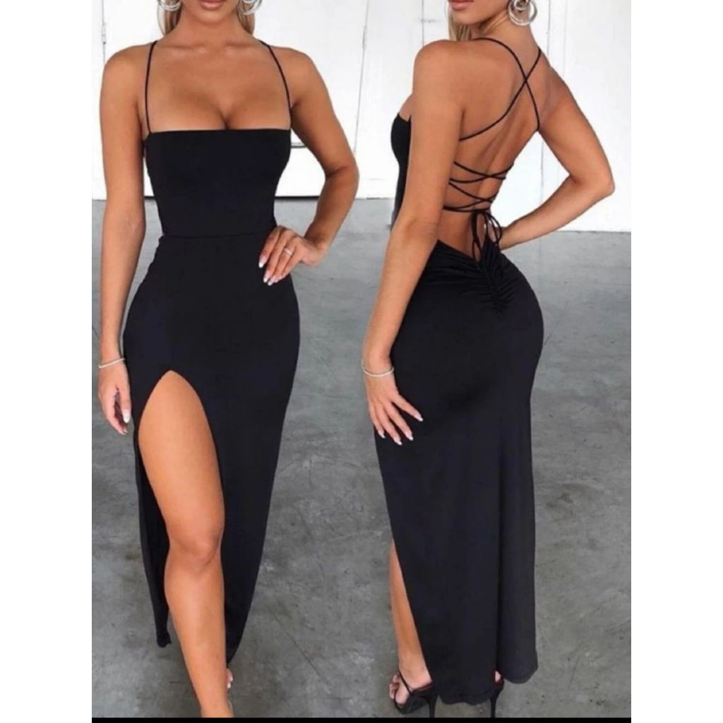 vestido alcinha colado longo feminino costa nua trancado empina bumbum com fenda elegante festa