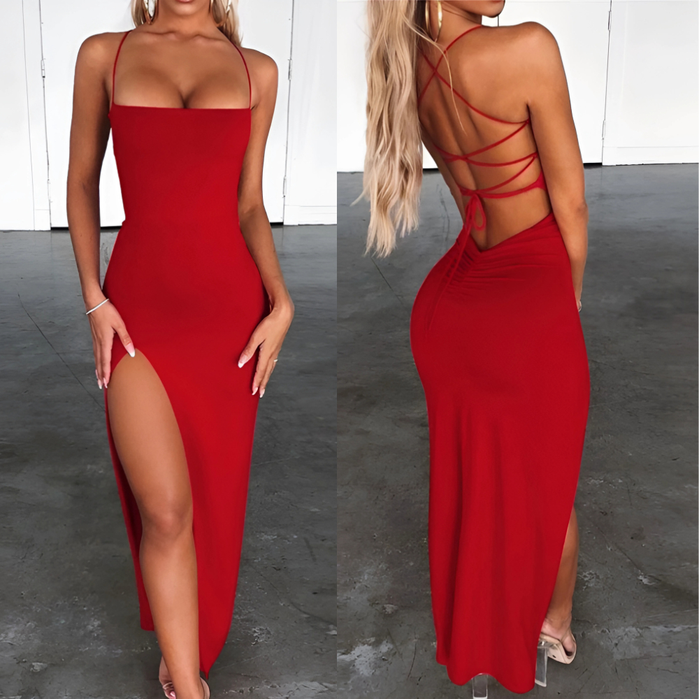 Vestido Feminino Canelado Longo Costa Nua com Fenda Lateral - Elegância e Sensualidade