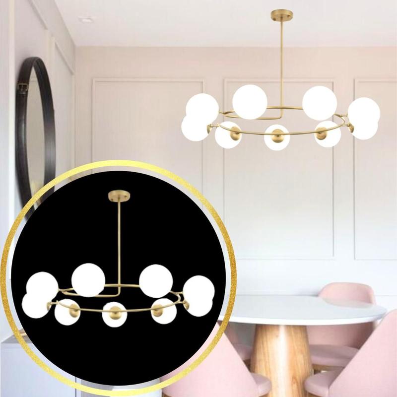 Luminaria Lustre Aro Jabuticaba 2 Globos de Vidro Cobre