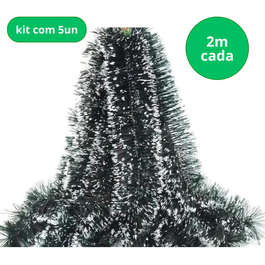 Kit 5 Festão De Natal Verde Escuro Com Claro ou Nevado Arvore De Natal 11cm x 2m