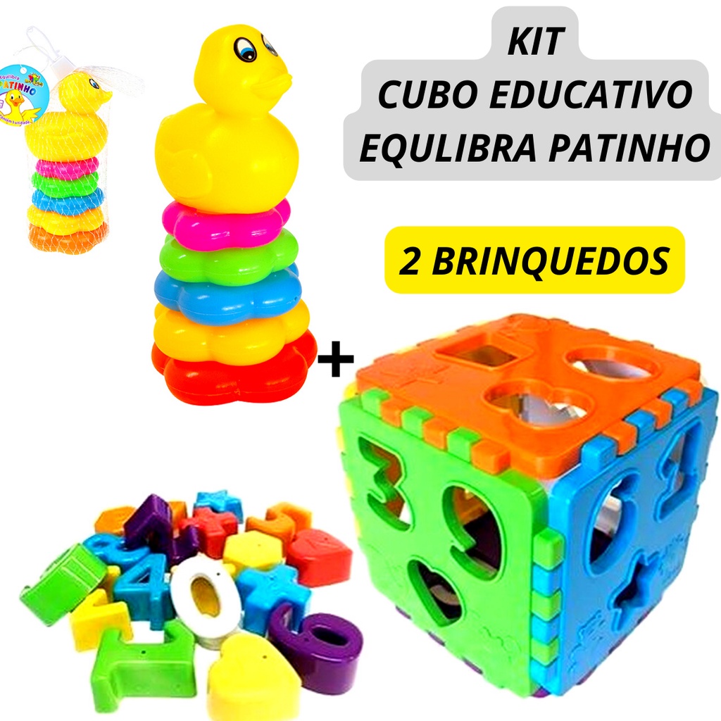 Kit 2 Brinquedos Educativos Cubo + Equilibra Patinho