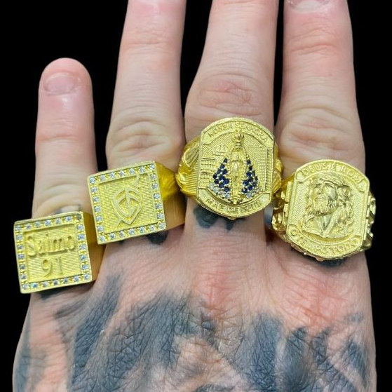 ANEL DEDEIRA AJUSTÁVEL,100% MOEDA ANTIGA,DEUS É BOM O TEMPO TODO,MÃE DE DEUS, FÉ, SALMO91,JOIAS,OURO