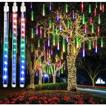 Cascata Solar Natal Led Meteoro SnowFall Gelo Chuva Natalino Iluminaçao 8 Tubos Bastao Enfeite Comemoraçao Festa Fim de Ano Decoraçao