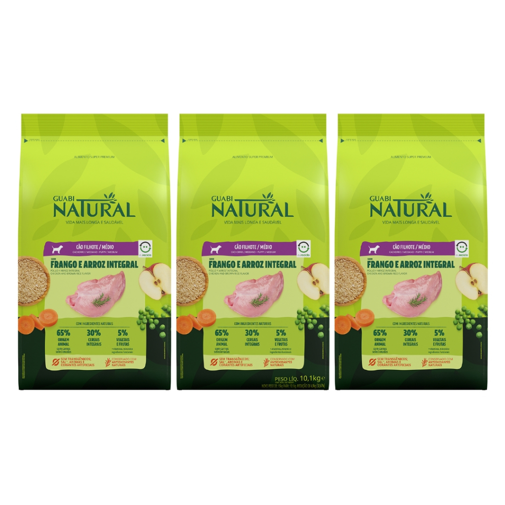 Ração Guabi Natural Frango e Arroz Integral Para Cães Filhotes Raças Médias - 2,5Kg, 10,1Kg ou 20Kg