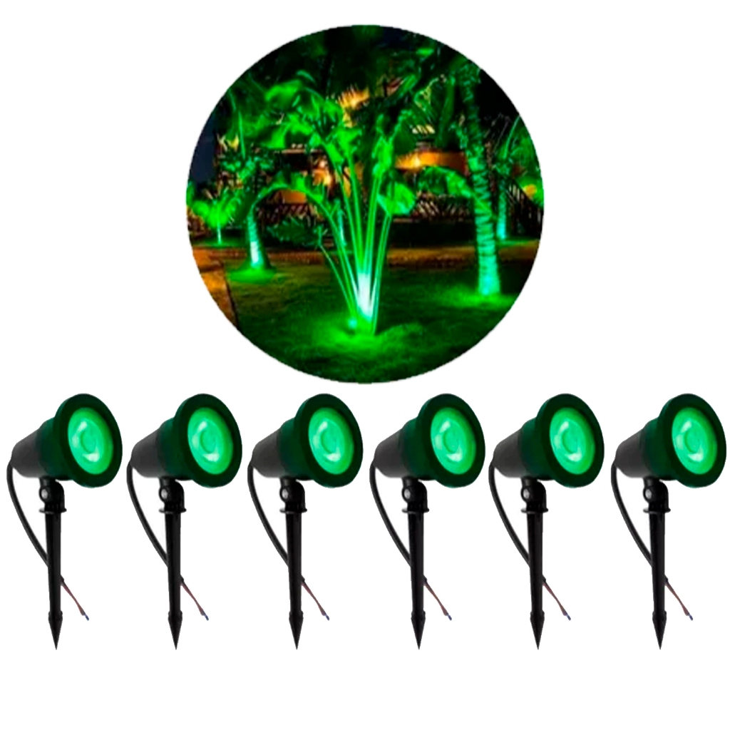 kit 6 un Luminária Espeto Jardim Cob Led 7w 9w Prova Dágua Bivolt Verde