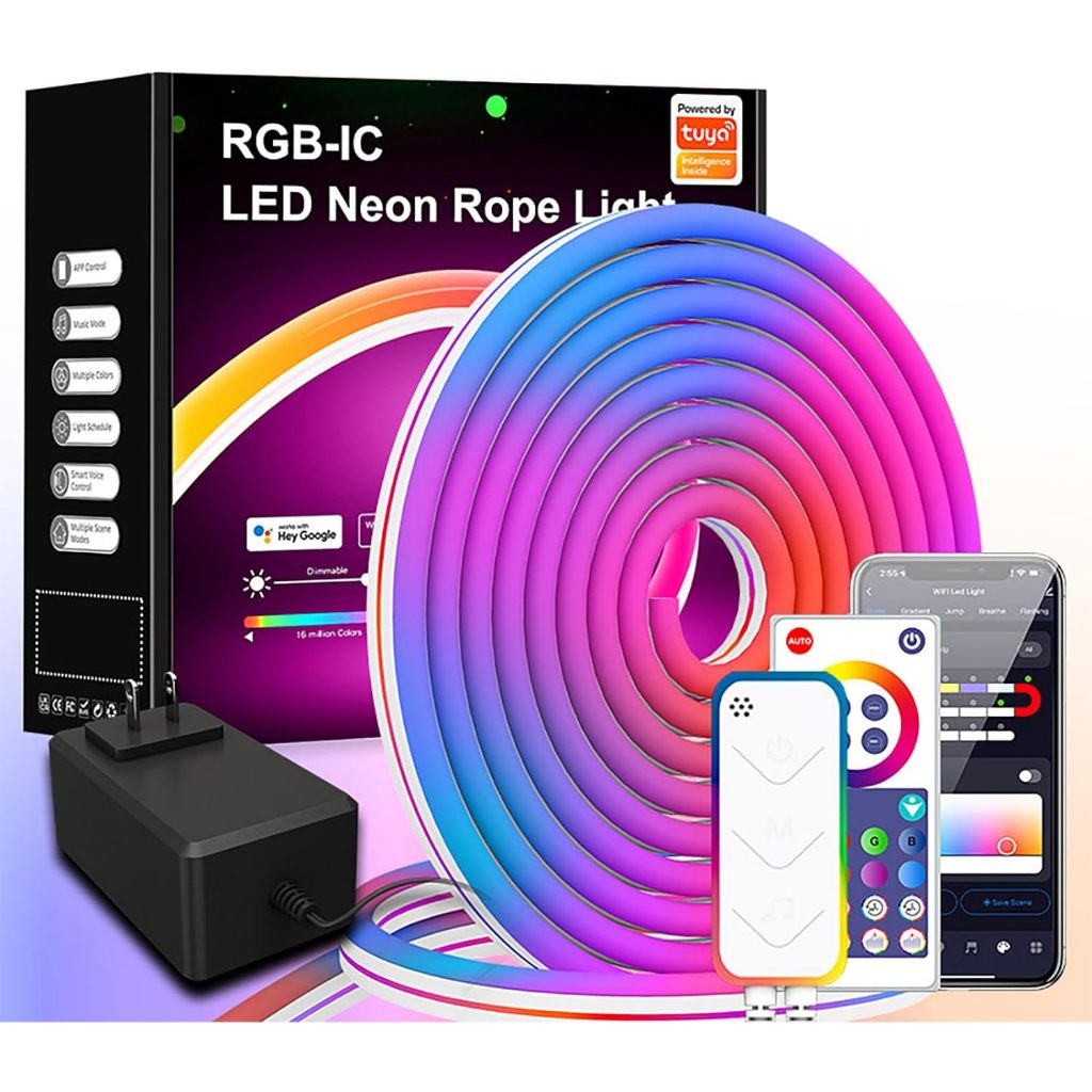 Luzes De Corda De Néon LED RGBIC Com Controlador Remoto De APP De Sincronização De Música E Adaptador De Energia , Lâmpada De Fita Waterpoof , Tiras Flexíveis De Design DIY Para Quarto , Sala De Estar , Jogos , Decoração De Festa