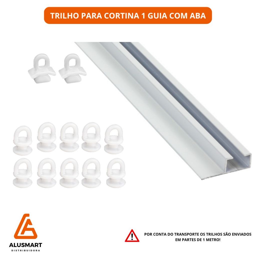 Trilho Suíço simples com aba para fixação branco - cortina onda perfeita - vários tamanhos - deslizante