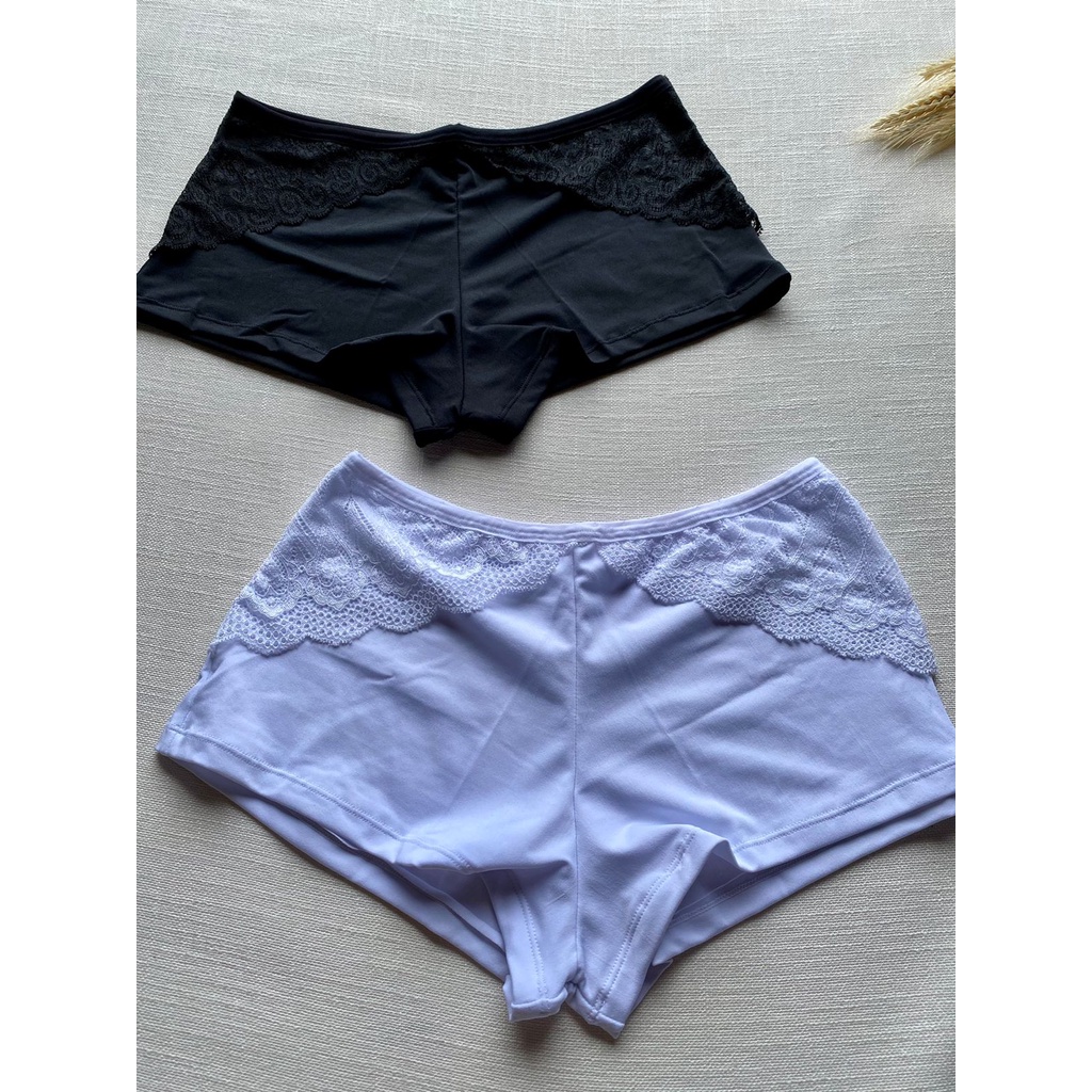 Calcinha Caleçon Shortinho De Microfibra Com Detalhes Em Renda Lingerie