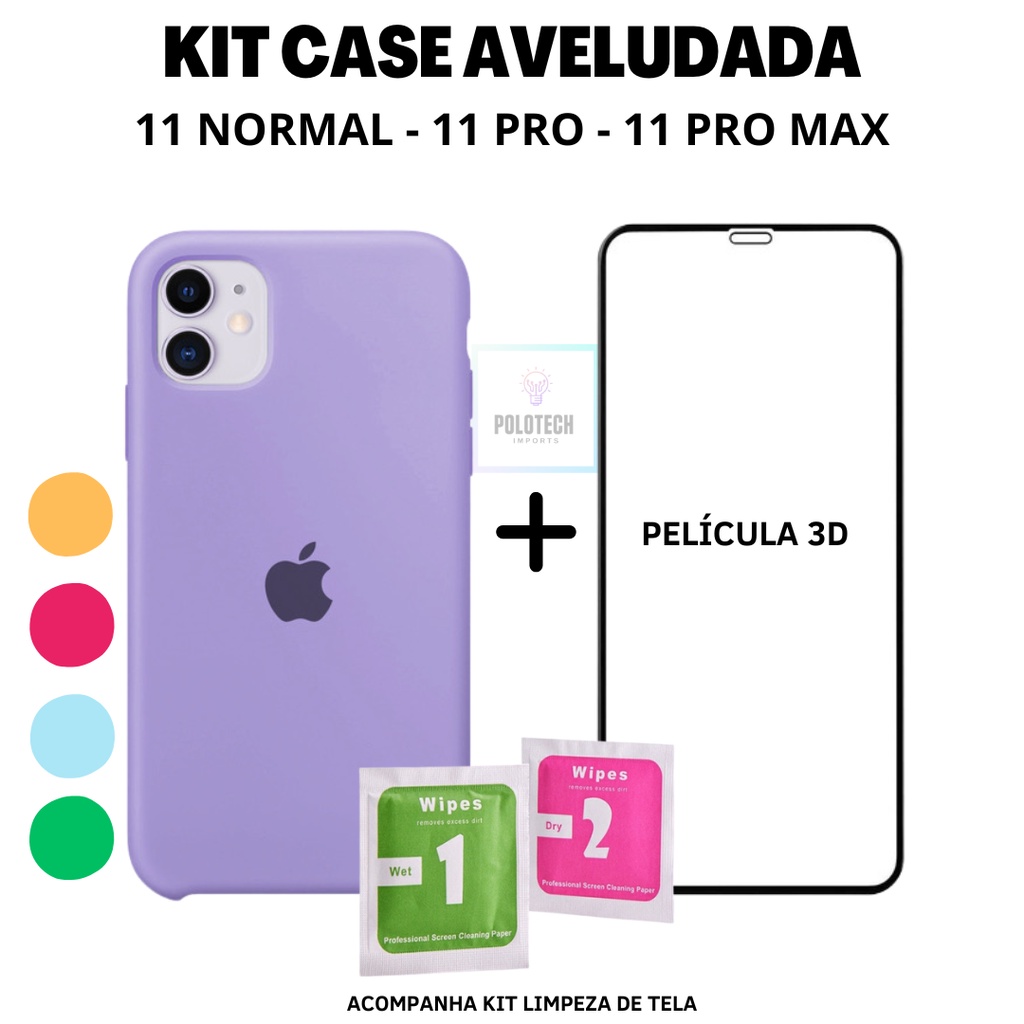 Combo Capinha IPhone 11, 11 Pro e 11 Pro Max Premium Silicone Com Logo + Película 3D + Kit Limpeza